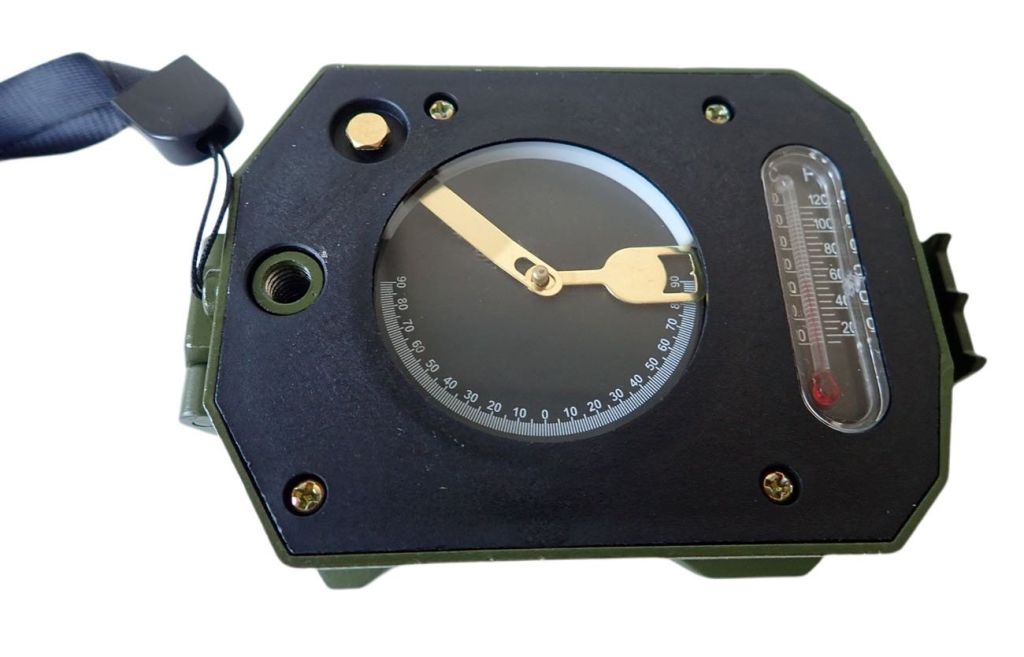 Dokonalá buzola v ARMY stylu s mnohačetnými funkcemi má otevírací kryt pro ochranu kompasu, mnoho měřítek pro rychlý výpočet vzdálenosti na mapě, tabulku s orientačními výpočty vzdáleností, s možností měření výšky horizontu a sklonu terénu, v kompasu je zabudovaný teploměr a také vodováha pro přesné nastavení kompasu pro přesné měření. Směrová šipka pro určení azimutu, průzorový hledáček s přesným zaměřením azimutu. Kryt pro ochranu kompasu s průhledným sklíčkem umožňující kontrolní měření azimutu při zavřeném krytu. Další možnost měření i při zavřeném víčku průzorem v boku kompasu. Umístění střelky ve speciální kapalině, která urychluje rychlé ustálení střelky. Různá měřitka pro rychlé určení vzdálenosti podle měřítka na mapě.