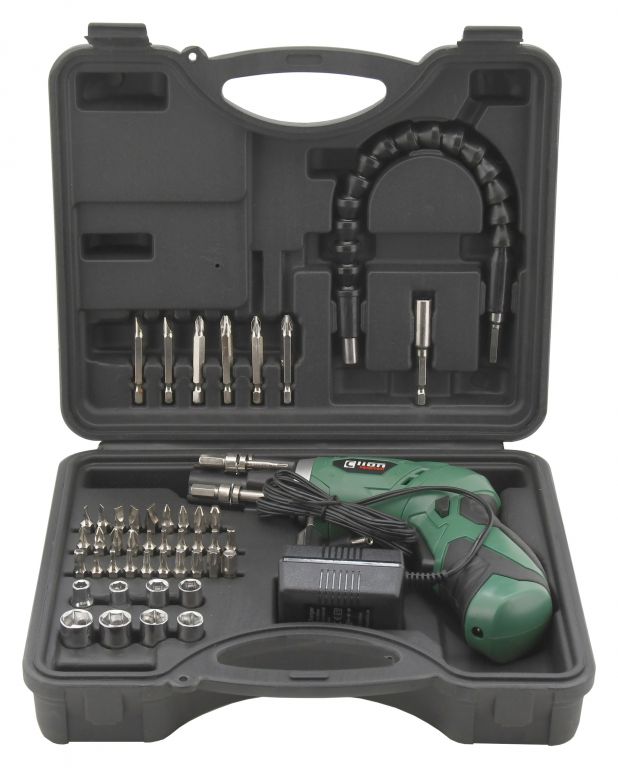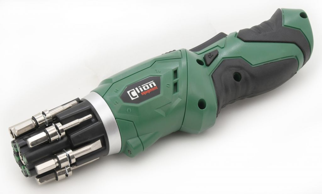 Kompaktní akumulátorový šroubovák C-LION equipment dodáván v plastovém kufříku spolu s nabíječkou a dalším příslušenstvím. Čelo šroubováku je opatřeno sklopnými rameny sloužící k rychlému nasazení nástrojů nejběžněji používaných bitů. Přístroj je opatřen přepínáním levo / pravotočivého chodu na bocích těla. Celé tělo šroubováku je navíc otočné, takže lze nástroj používat i v prostorech jindy nepřístupných klasickému tělu šroubováku. Napájení je řešeno 3,6V akumulátorem Li-Ion 1300 mAh, poskytujícím dostatečný a dlouhodobý výkon pro práci. Pro osvětlení pracovní plochy v hůře dostupných místech pomáhá LED přisvětlení. Sada, kromě rychlonástavců nabízí další nástroje a bity, které lze uchytit klasicky pomocí 1/4" HEX zakončení, nebo pomocí prodlužovacích nástavců, či adaptérů.