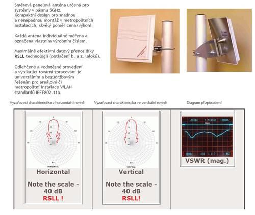 Směrová panelová anténa určená pro systémy v pásmu 5GHz s laděnou charakteristikou pr...