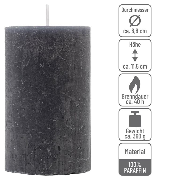 Antracit parafínová svíčka rustikální 11,5cm, 40h sada 12 ks
