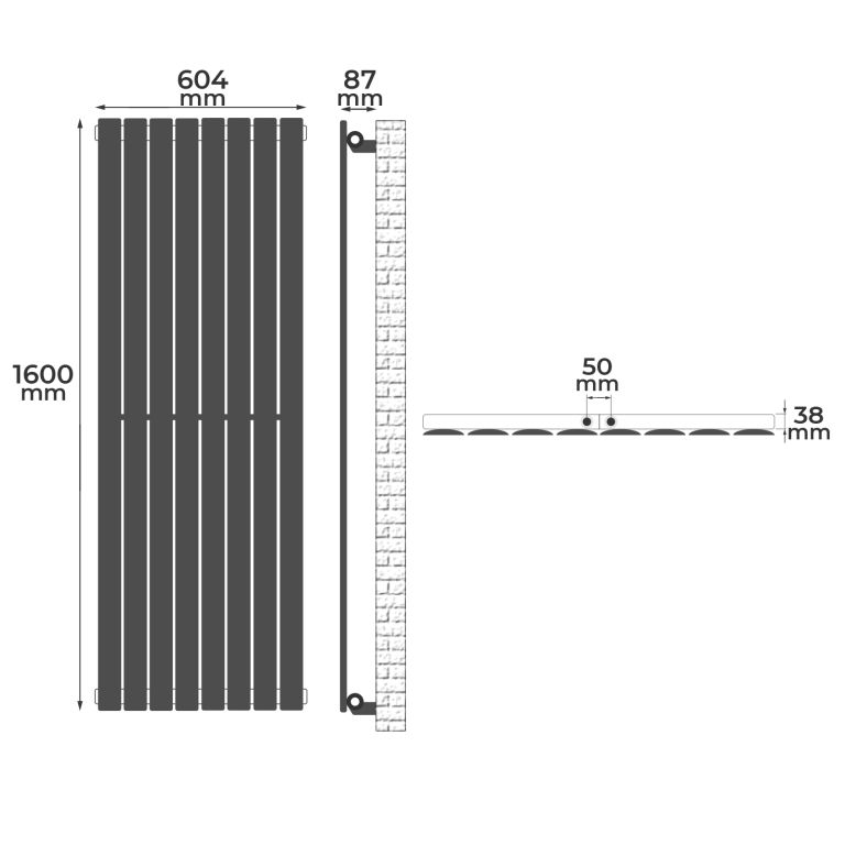 AQUAMARIN Vertikální radiátor, 1600 x 604 x 52 mm