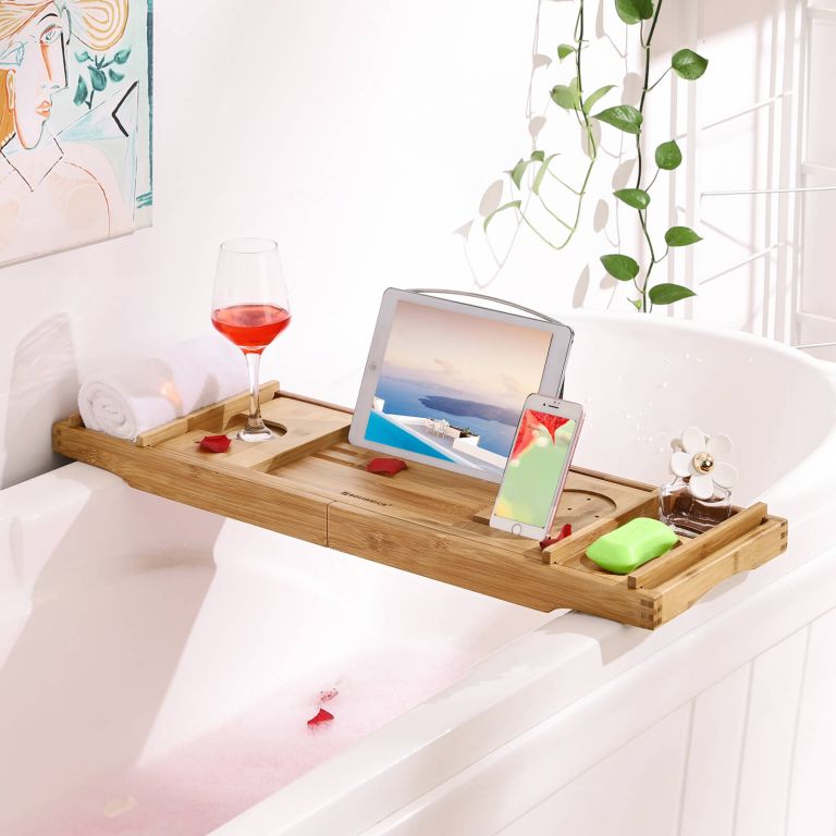 Proměňte běžné koupání v zážitek pětihvězdičkového wellness. Bambusová police do vany vám umožní číst oblíbenou knihu, sledovat film nebo si vychutnat sklenku vína, zatímco se ponoříte do teplé pěny. Elegantní přírodní design vnese do koupelny klid, harmonii a dotek luxusu.