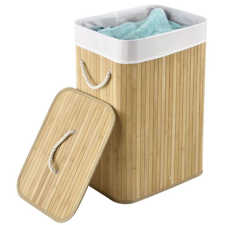 Bambusový koš na prádlo 72 l s víkem a vakem