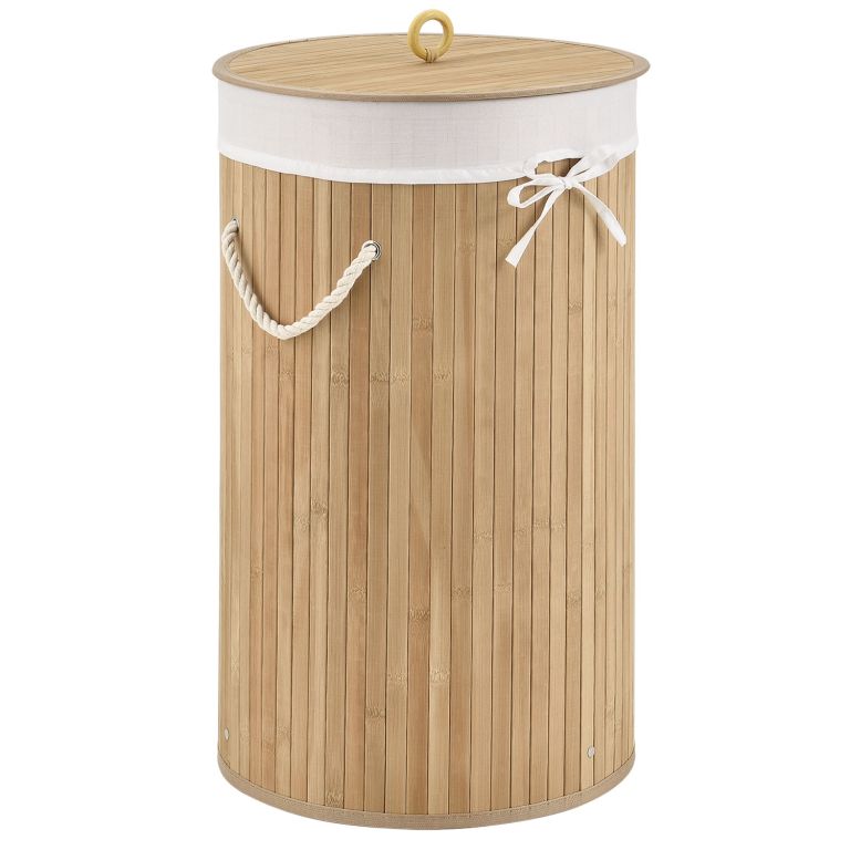 Bambusový koš na prádlo kulatý 55 l s víkem a vakem