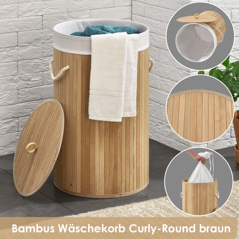 Dodejte své domácnosti nádech přírodní elegance s kulatým bambusovým košem na prádlo o objemu 55 litrů. Díky svému decentnímu vzhledu skvěle zapadne do koupelny, ložnice nebo dětského pokoje a poskytne praktické místo pro každodenní odkládání prádla. Kompaktní rozměry jej předurčují i do menších prostor, kde oceníte, že prádlo zůstane vždy diskrétně skryté.