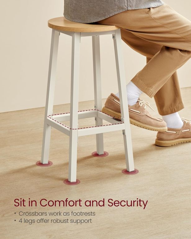 Dodejte své kuchyni či jídelnímu koutku nadčasový styl s těmito barovými židlemi VASAGLE. Kombinace bílého kovového rámu a béžového sedáku v dekoru bílého dubu působí elegantně, přirozeně a snadno zapadne do moderního i klasického interiéru. Díky kompaktním rozměrům židle snadno zasunete pod barový stůl a ušetříte tak cenné místo.