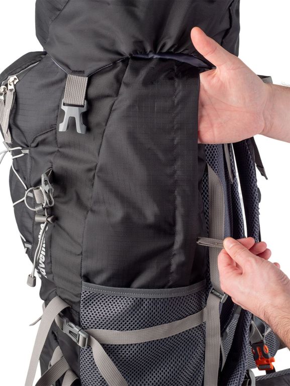 Kvalitní turistický batoh na horskou turistiku Adventure 75 s lehkou nosnou hliníkovou konstrukcí a s vyztuženou (plastovými výztuhami) dobře odvětrávanou zádovou částí se hodí na dlouhé turistické výlety i na náročné horské tůry. Svojí kompaktností, velkým množstvím různých kapes a mnoha poutek a úvazků je velmi účelně vybavený i pro náročné horské turisty.