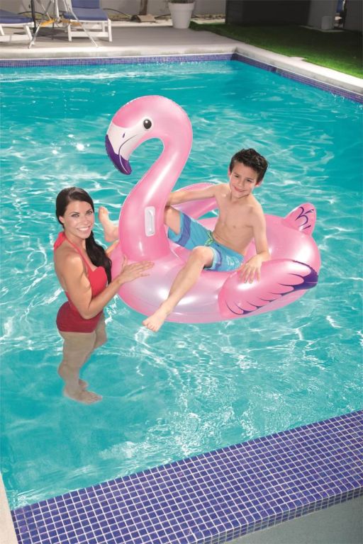 Bestway nafukovací plameňák má krásné flitrové prvky na křídlech. Pevná, plastová madla pomůžou udržet dětem lépe stabilitu při hře. Bezpečnostní ventily a 2 vzduchové komory. Vyrobeno z kvalitního a odolného vinylu o síle 0,22 mm.