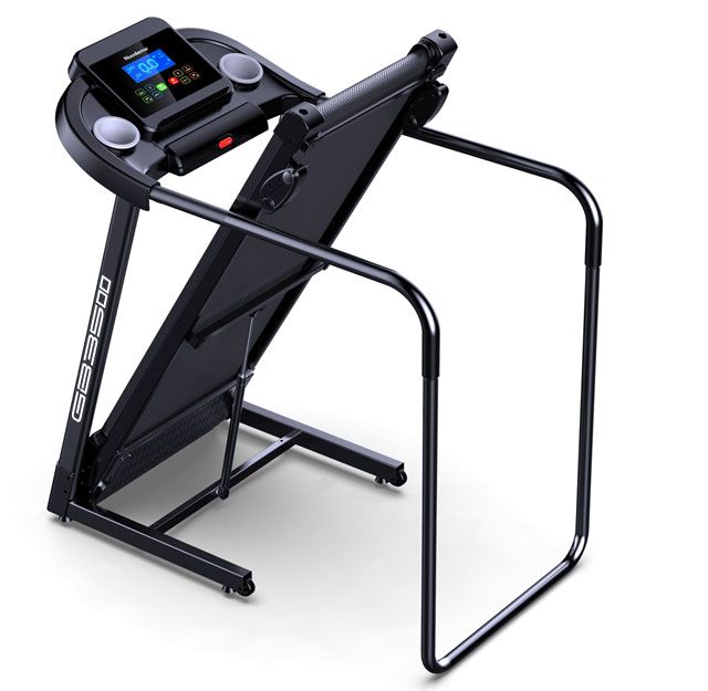 Motorový běžecký pás GB3500 v provedení se zábradlím podél celé běžecké plochy je vhodný pro použití na bezpečnou chůzi s možností opory při zakolísání a občasný pomalejší běh. Stroj má motor o výkonu 1,0 HP, max. výkon 2,0 HP, rychlost v rozmezí 0,5 - 8,0 km/hod. s odpruženou běžeckou plochou. Tento běžecký pás patří mezi jednodušší běhací pásy pro rekreační použití, je také vhodný na rekonvalescenci po úrazech díky možnému nastavení pomalé rychlosti a také díky pevnému zábradlí. Stroj také dobře poslouží pro udržení kondice starších lidí. K tomu napomáhá i zábradlí, které umožňuje bezpečné a pohodlné držení při chůzi. 6-ti bodový odpružený polyuretanový pás umožňuje pohodlný pohyb šetřící dolní končetiny před nadměrným opotřebením kloubů. Stroj je vhodný pro starší a pro rekonvalescenci po úrazech a zraněních především dolních končetin nebo při jakýchkoli pohybových potížích díky své nízké počáteční rychlosti a díky pevnému zábradlí. Rukojeti na ovládacím panelu běžeckého pásu jsou vybaveny snímačem tepové frekvence. Pás je dále vybavený 12 různými přednastavenými programy s různou intenzitou cůze a běhu. Pás je vybavený bezpečnostní rychlobrzdou - pomocí bezpečnostního klíče umožňuje okamžité vypnutí v případě nutnosti. Pás má dále dvě odkládací kapsy na různé pomůcky. 5" LED computer měří čas, rychlost, vzdálenost, spotřebu kalorií, puls a má přednastavených 12 různých programů pro běh. Výrobek má certifikaci CE/ROHR dle EN957 určenou pro fitness stroje a zařízení.