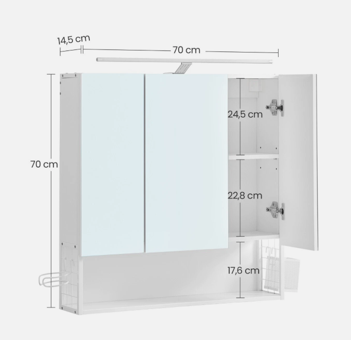 Dopřejte své koupelně svěží vzhled s touto elegantní skříňkou v bílé barvě. LED osvětlení poskytuje jasné světlo, které oceníte při ranní přípravě i večerním odlíčení. Tři zrcadla a dostatek úložného prostoru vám usnadní každodenní rutinu a dodají koupelně moderní šmrnc.