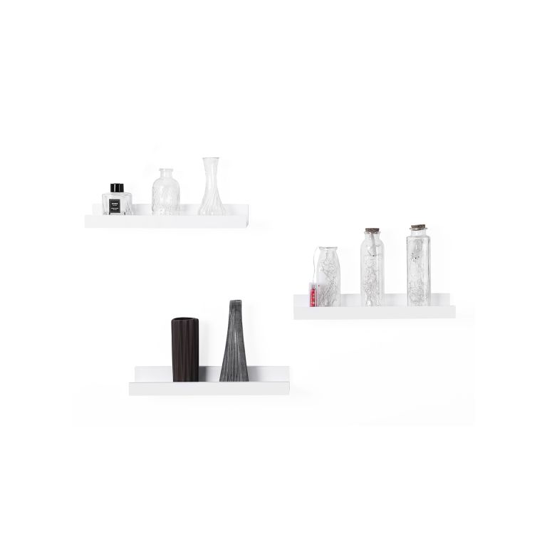 Zobrazit podrobnější popisSada tří bílých polic s lesklým povrchem nabízí úložný prostor i stylovou dekoraci.