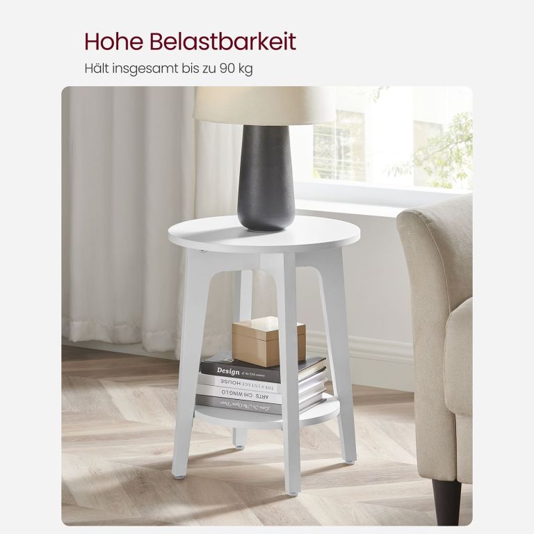 Vneste do svého domova svěží eleganci s tímto moderním bílým odkládacím stolkem. Jeho čisté linie a kulatý tvar se snadno sladí s jakýmkoli interiérem a nabídnou místo pro kávu, květiny či oblíbenou knihu. Dvě úrovně odkládací plochy vám umožní mít vše důležité vždy po ruce a zároveň stylově vystavit dekorace nebo vzpomínkové předměty.