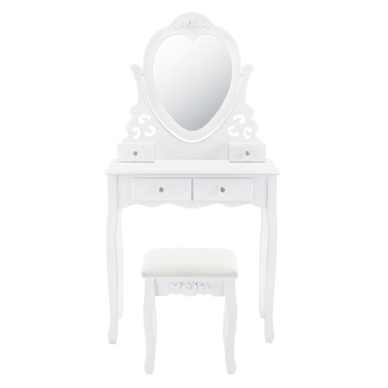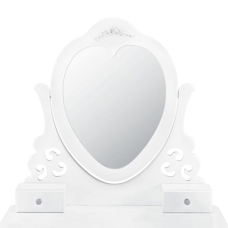 Bílý toaletní stolek Julia se srdcovým zrcadlem a taburetem