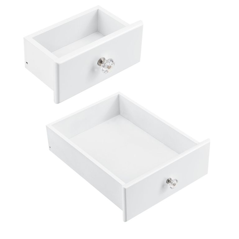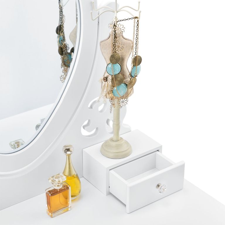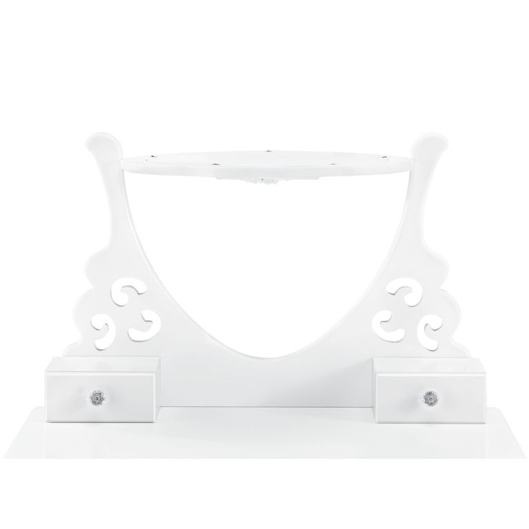 Stolek je vyroben z pevného MDF materiálu s bílým lakem, který chrání povrch před poškrábáním. Čtyři zásuvky umožní přehledné uložení všech kosmetických potřeb. Montáž je snadná a rychlá, údržba nenáročná.