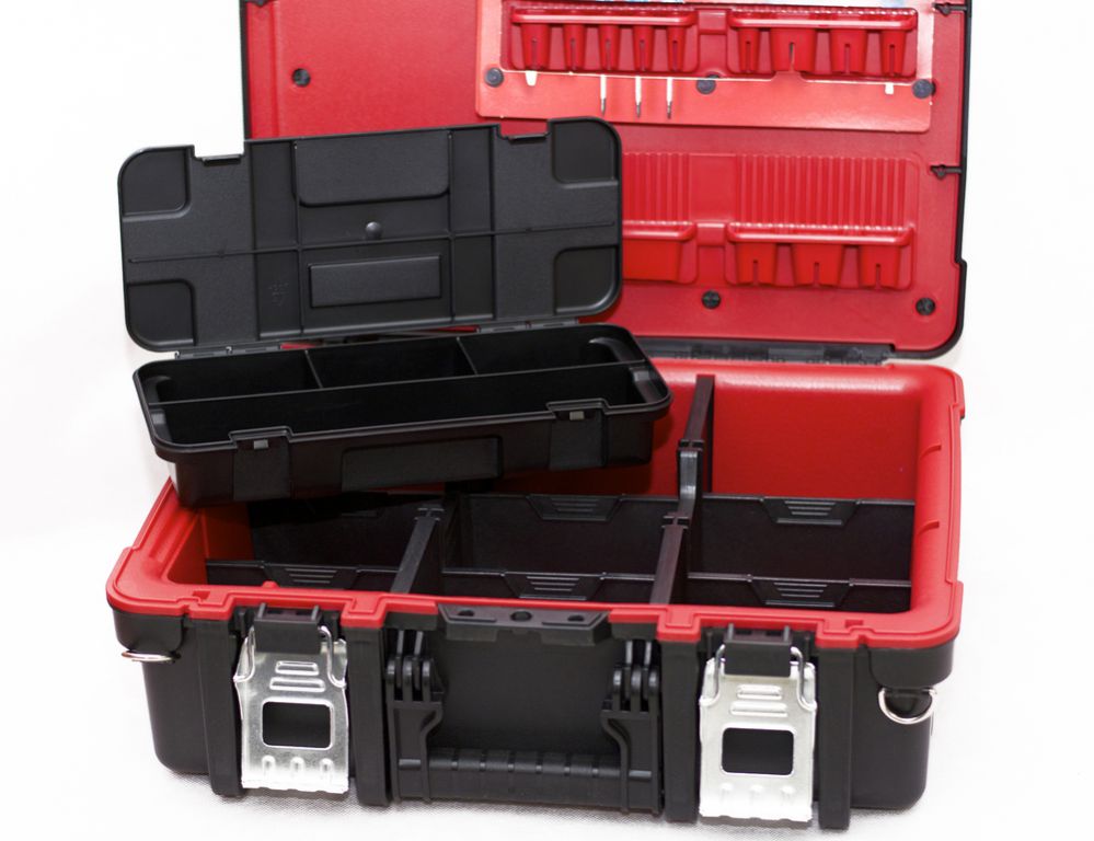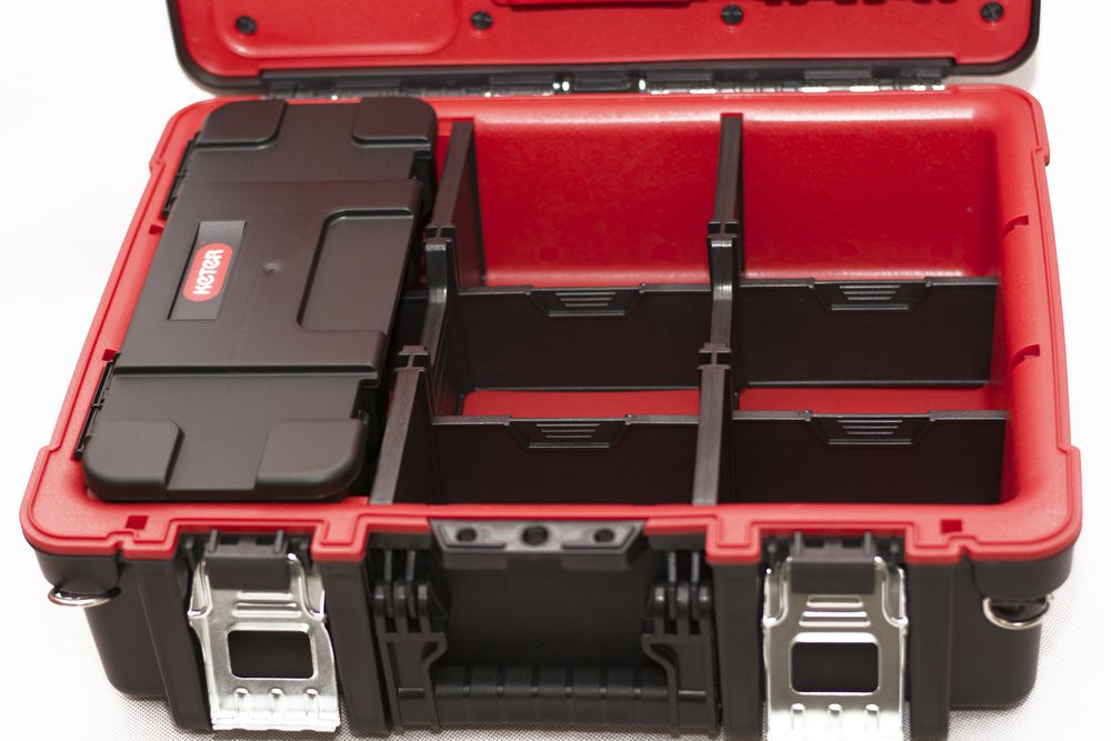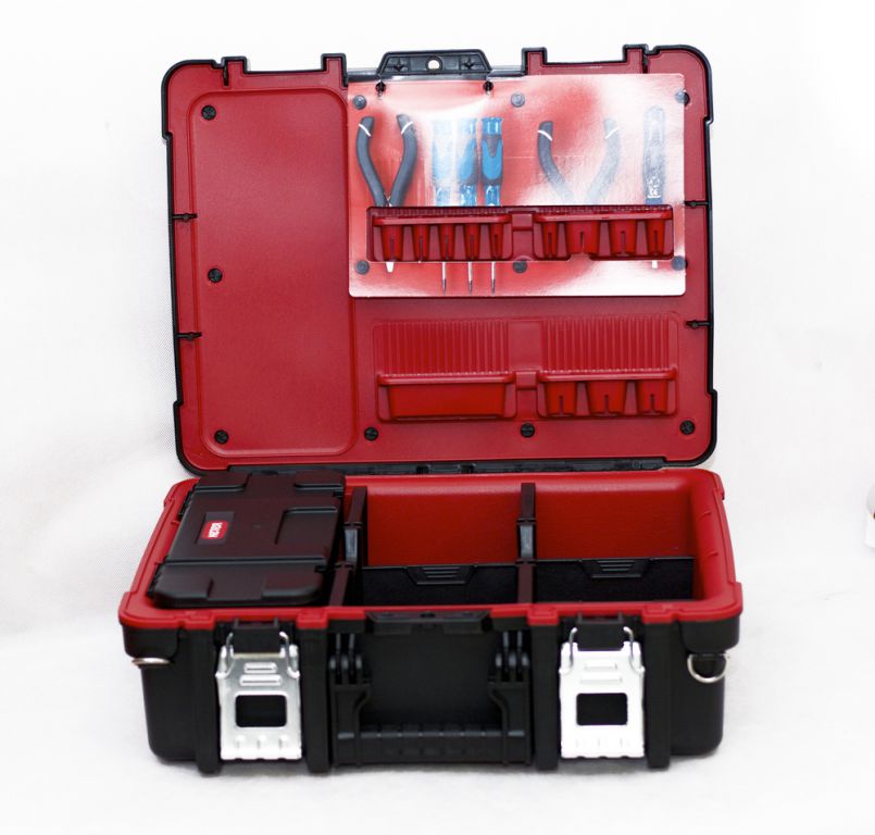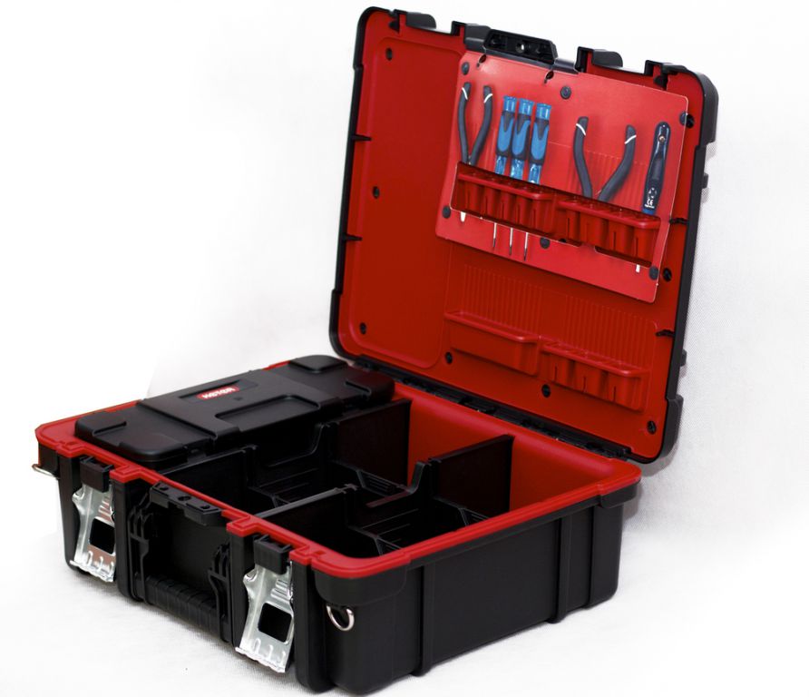 Praktický box s velkým objemem. Jeho vnitřek usnadňuje skladování nářadí různých velikostí, organizér ve skříňce umožňuje snadnější přístup k nejčastěji používanému nářadí. Výrobek byl navíc vybaven vyjímatelným organizérem s přepážkami. Díky pohodlnému držadlu lze skříňku bez problému přenášet. Produkt byl vyroben z vysoce kvalitních materiálů, což zajišťuje jeho stálost a odolnost.