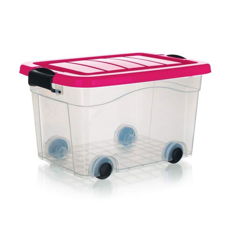 Na spodní straně boxu najdete praktická kolečka pro jednodušší a pohodlnější manipulaci. Navíc je vybavený barevným víkem, které chrání uložené věci před prachem a nečistotami. Pevně drží na boxu díky postranním klipům.