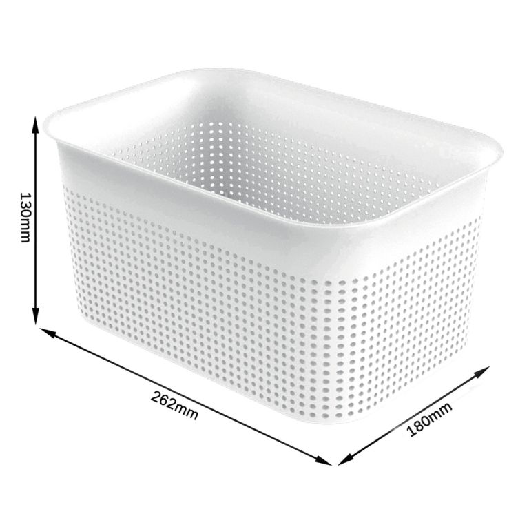 Úložný box s děrovanou strukturou. Jednoduchý a moderní design. Zaoblené rohy. Kvalitní materiál a provedení od švýcarské značky Rotho.