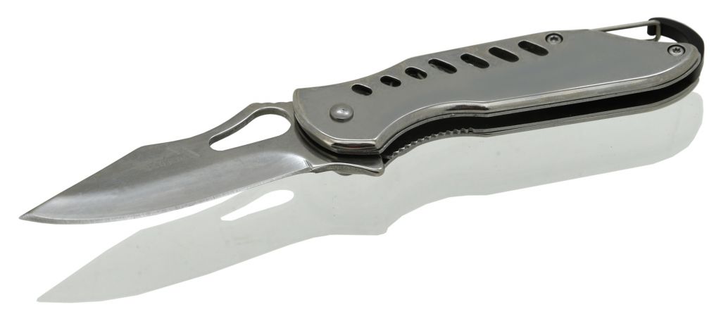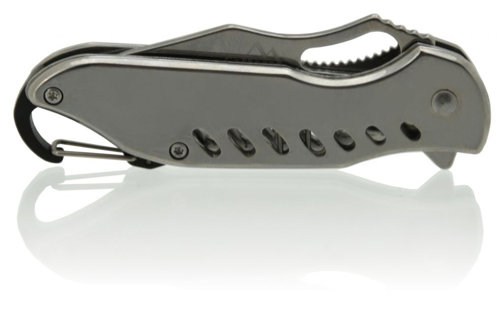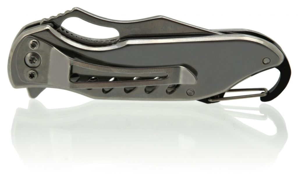 Rukojeť s atraktivní perforací obou střenek z oceli s leštěným kovovým vzhledem. Zadní strana je doplněna klipsem k přychycení. Nůž je při držení obzvláště pohodlný. Díky výstupku na čepeli, je možné otevření nože jednou rukou. Nůž je vybaven pojistkou, která se ovládá bočním posuvem palce ve spodní části rukojeti.