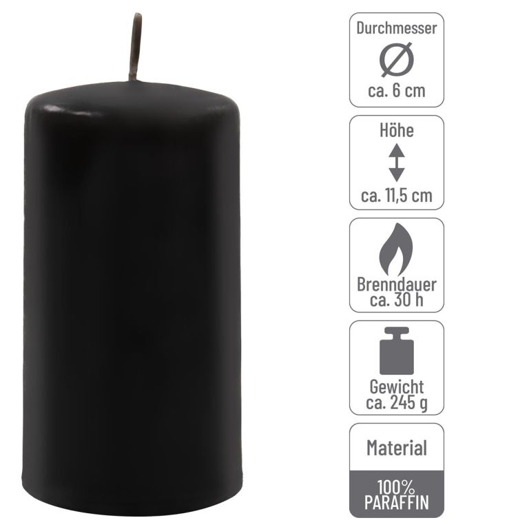 Černá parafínová svíčka 11,5 cm, 30 h hoření, sada 18 ks