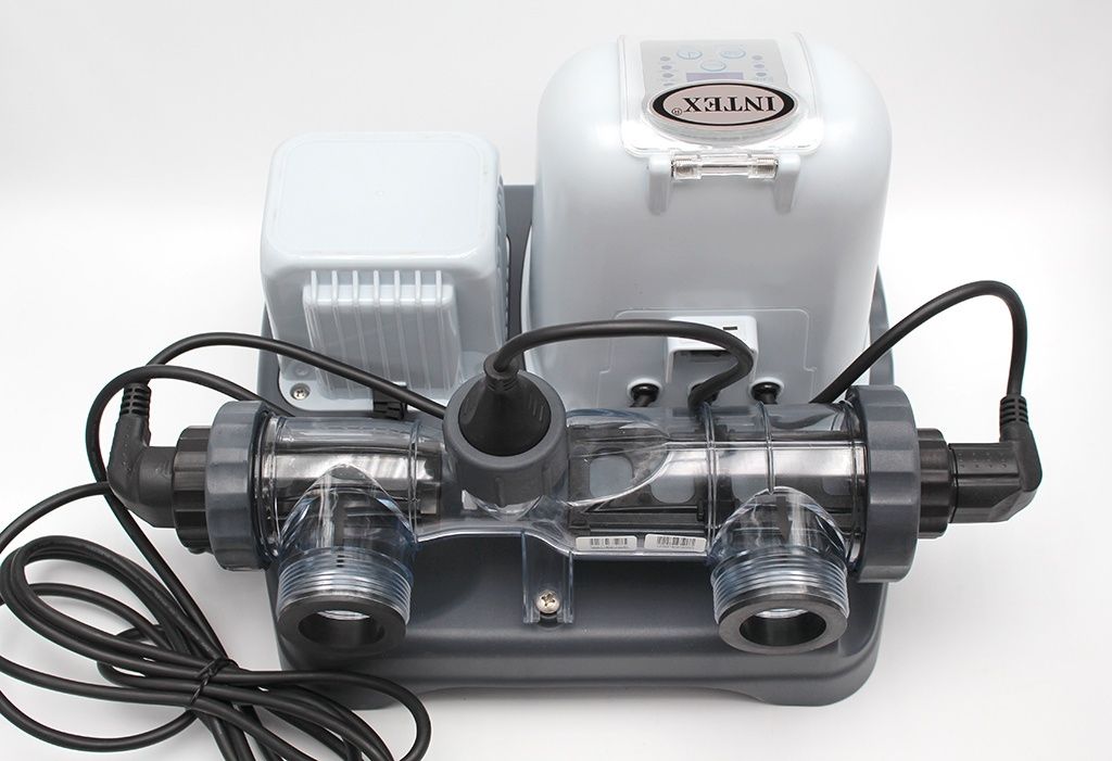 Běžná sůl (chlorid sodný) se skládá ze dvou prvků - sodíku a chlóru. Během instalace chlorinátoru je v bazénové vodě rozpuštěna přesně odměřená dávka soli. Tato lehce slaná voda prochází přes elektrolytickou jednotku chlorinátoru, která z procházející vody generuje chlór a ihned ho uvolňuje do vody.