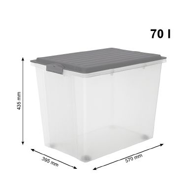 Úložný box o objemu 70L. Transparentní box + růžové víko. Víko je opatřeno klipy proti nežádoucímu otevření. Kvalitní materiál a provedení.
