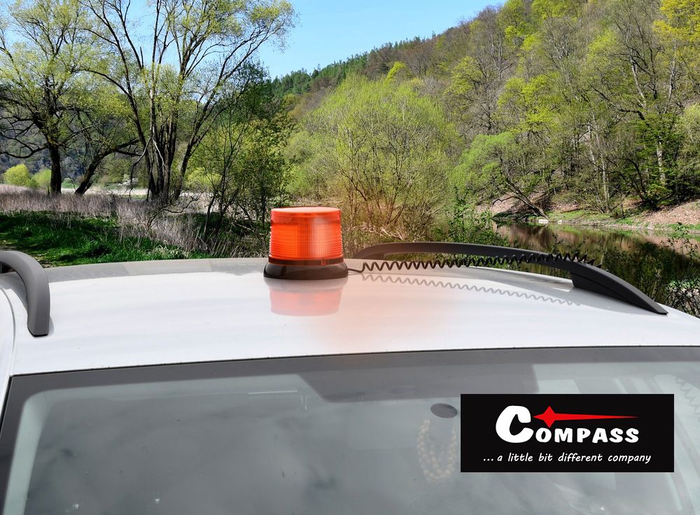 Výstražný maják opatřený magnetem - pro uchycení stačí položit na střechu vozu, nebo připevnit pomocí vhodných šroubů. Napájecí zástrčka je opatřena krouceným (natahovacím) kabelem a tlačítkem pro postupné přepínání dvou režimů svícení.