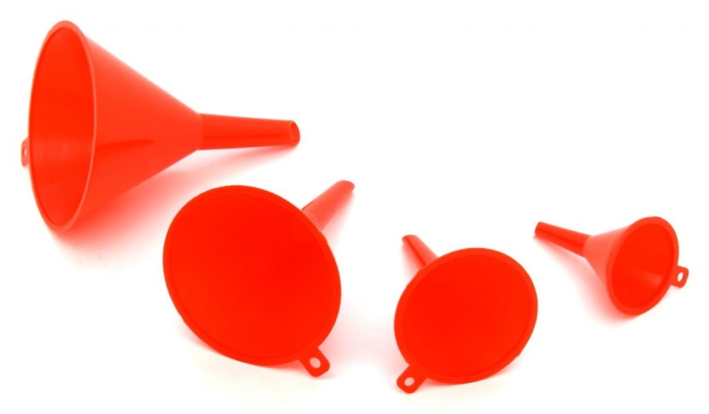 Univerzální 4 dílná sada trychtýřů pro přelévání kapalin.