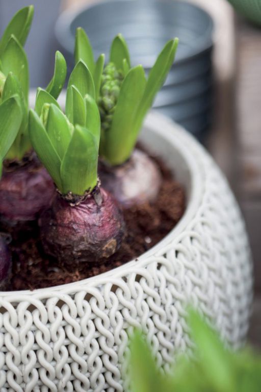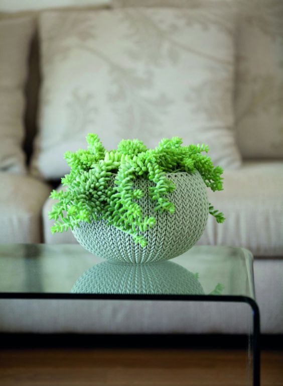 Moderní plastový květináč ve stylu KNIT - design je inspirován vzorem z pletení.