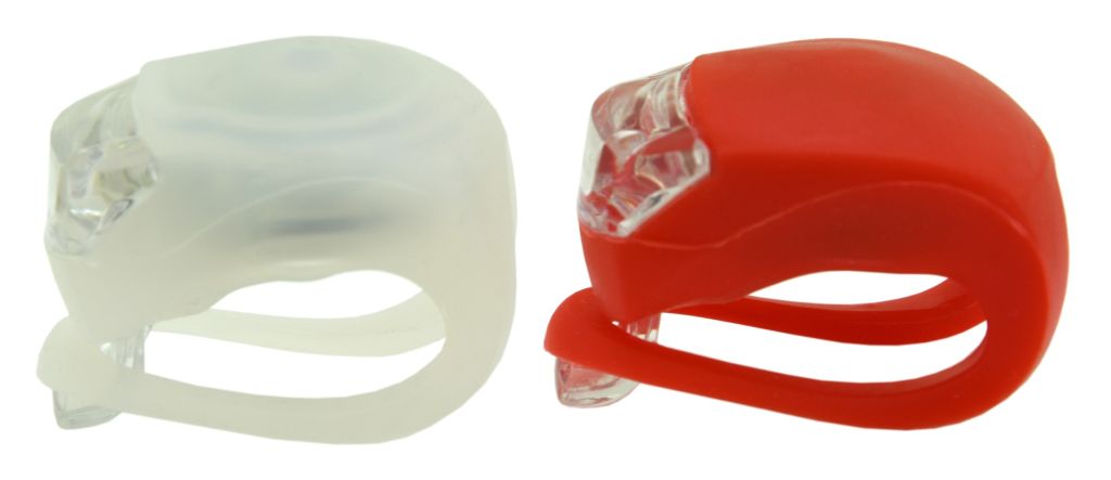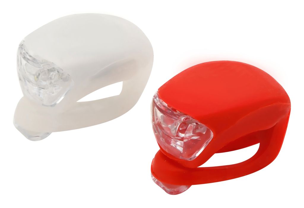 Svítilna na kolo, kočárek, či koloběžku s jednoduchým systémem upevnění pomocí pružných silikonových objímek. Lze snadno připevnit např. na řidítka, tyč pod sedlem, či jinou část jízdního kola. Lze použít na řidítka s různými průměry. Sada je složena ze dvou kusů, kdy jedno světo je bílé a jedno červené, světla nabízí dosvit do 15 metrů a světelný tok 18 lm. Ovládání je řešeno stisknutím skrytého spínače na vrchní části. Světlo tak nabízí 3x režimy (stálé svícení / rychlé blikání / pomalé blikání). Baterie lze jednoduše vyměnit sejmutím silikonového obalu z těla svítilny a odejmutím krytky baterií.
