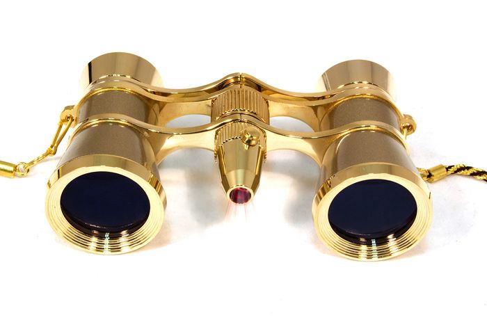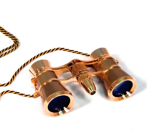 Elegantní divadelní kukátko s LED osvětlením. Triedr je opatřen tenkým kovovým řetízkem. Dodává se s váčkem pro uložení a čisticí utěrkou na optiku.
