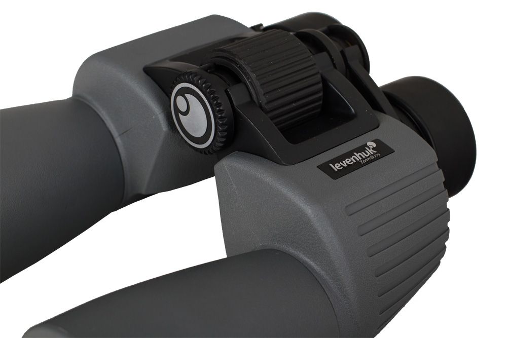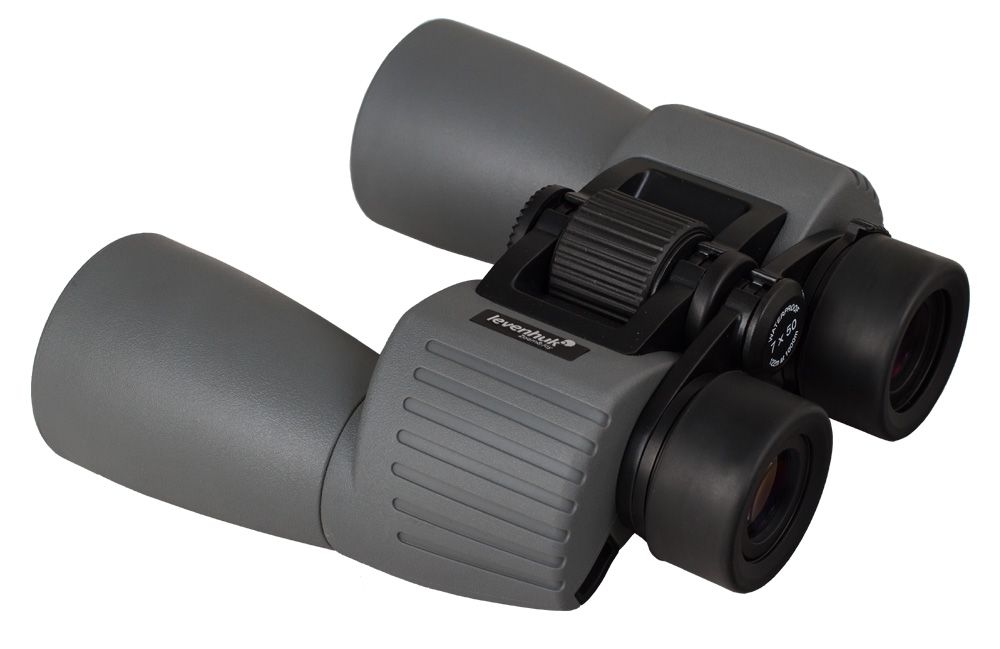 Široké zorné pole vám umožňuje sledovat pohybující se objekty - například letícího ptáka a pozorovat zvířata v divoké přírodě. Výkonné objektivy skládající se ze dvou optických prvků zajišťují jasný obraz, a to i za zhoršených světelných podmínek. Triedr má hermeticky uzavřený plášť - odolá tedy prachu, nečistotám, stříkající vodě i hustému dešti. Optika dalekohledu je vyrobena z borosilikátového skla BaK-4. Konstrukce tohoto dalekohledu s Porro hranoly umožňuje zcela eliminovat světelné ztráty uvnitř přístroje. Dvouprvkové okuláry vytvářejí ostrý, realistický obraz. Optika je na všech plochách pokryta několika vrstvami antireflexní povrchové úpravy. K ochraně optiky před zamlžováním i za vysoké vlhkosti a při prudkých změnách teploty je plášť naplněn plynným dusíkem. Binokulární dalekohled Levenhuk Sherman 7 x 50 vytváří ostrý, čistý a kontrastní obraz v přirozených barvách. Jeho ergonomický design zajišťuje maximální komfort při pozorování. Triedr lze snadno nastavit tak, aby vyhovoval potřebám uživatele: můžete si snadno upravit mezipupilární vzdálenost a dioptrickou korekci a pomocí twist-up očnic nastavit optimální vzdálenost svých očí od okulárů přístroje. Díky dlouhému očnímu reliéfu je tento triedr vhodný i pro osoby s brýlemi. Plášť je hermeticky utěsněný - do přístroje nepronikne prach, nečistoty ani vlhkost. Reliéfní pogumování světle šedé barvy zajišťuje pevný a pohodlný úchop.