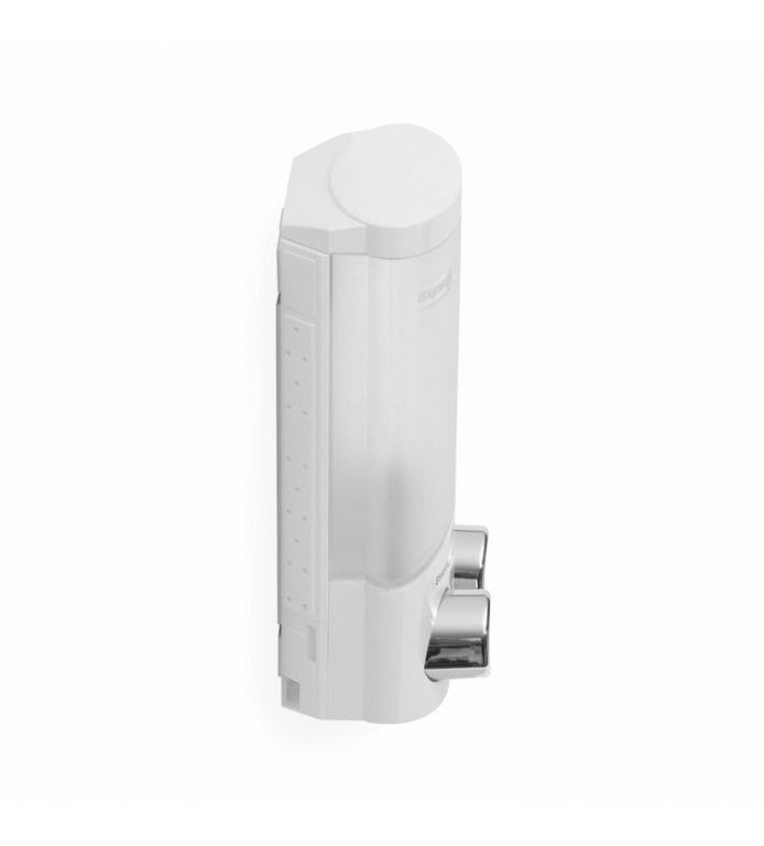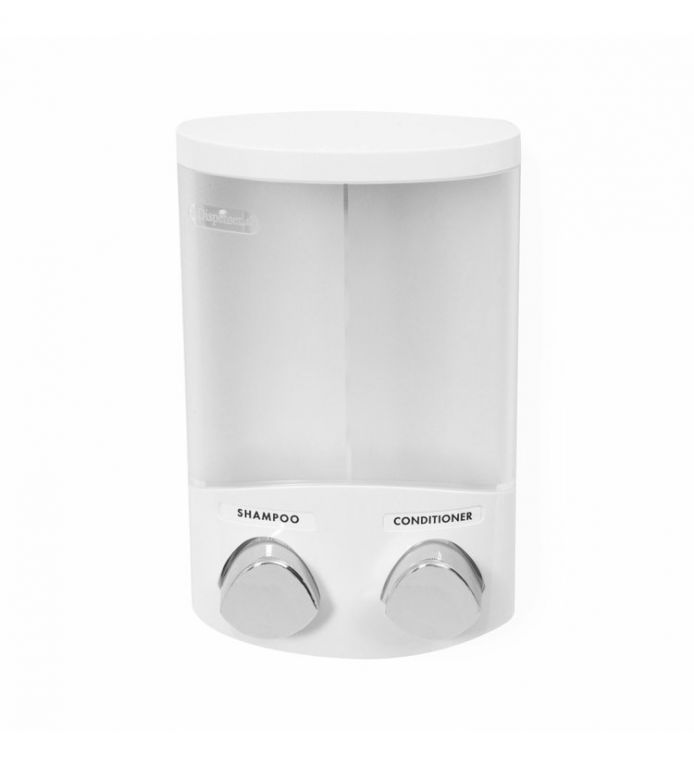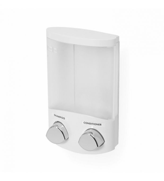 Dvojitý dávkovač mýdla, šampónu nebo desinfekce snadno připevníte na hladkou stěnu i bez vrtání. Každá nádobka má objem 310 ml a jejich doplnění je velice snadné. Praktický dávkovač, který vám pomůže udržovat čistotu a navíc dodá vaší koupelně nebo kuchyni nádech elegance.