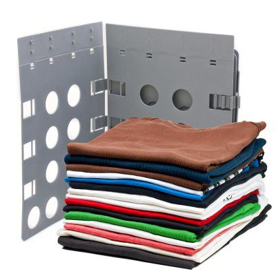 S naší skládací deskou Flip 'n Fold můžete v několika vteřinách složit košile, trička, svetry nebo blůzy do stejného stohu oblečení. Každý pohled do skříni vás potěší. Všechno leží hezky na sobě v jednom komínku. A je to tak snadné. Dokonce i ložní prádlo lze skládat se skládací deskou na prádlo na jednotnou velikost. Od této chvíle bude vaše skříň vždy uklizená – se skládací deskou Flip 'n Fold v špičkové kvalitě za nízkou cenu.