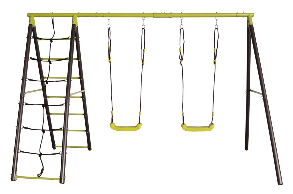 Houpací set G21 poskytuje dětem velkou možnost zábavy a venkovního vyžití. K sadě s rámem, žebříkem, lezeckou sítí a dvěma houpačkami můžete dokoupit i houpací kruh nebo houpačku pro batolata. Ke konstrukci snadno připojíte i dokoupitelnou skluzavku G21 a vytvoříte tak dětem vlastní parádní hřiště.
