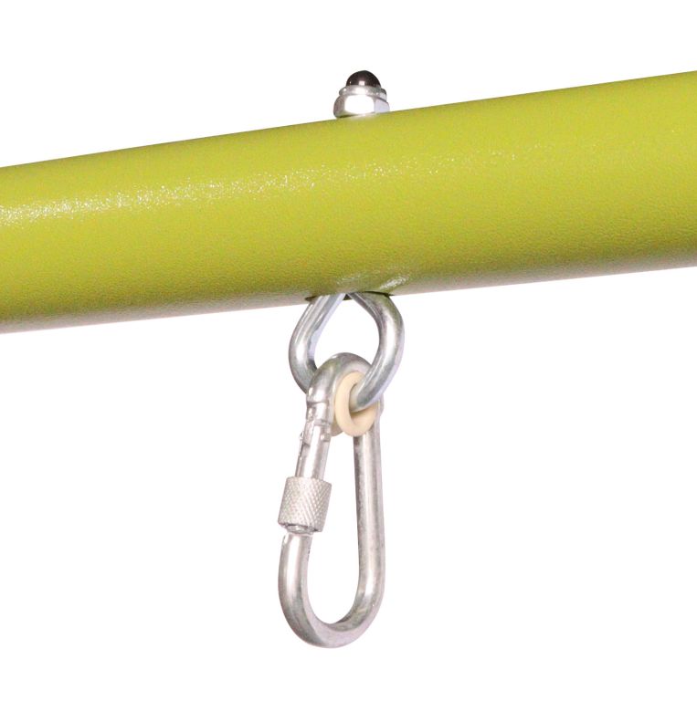 stabilní konstrukce z ocelových trubek s kovovými oky pro zavěšení houpaček