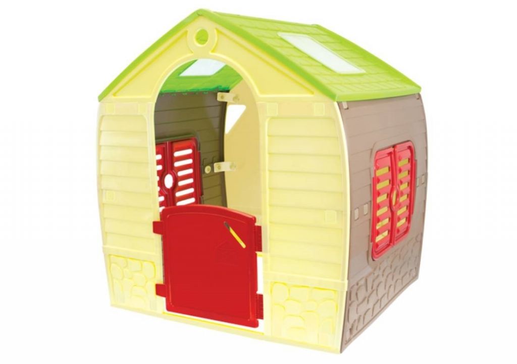 Zahradní plastový domeček Mochtoys se zvířátky má velmi veselé barvy.