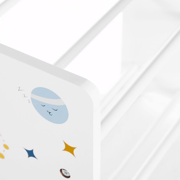 Zobrazit podrobnější popisHravý regál s motivem vesmíru učí děti třídit hračky. Bezpečný, stabilní a snadno udržovatelný.