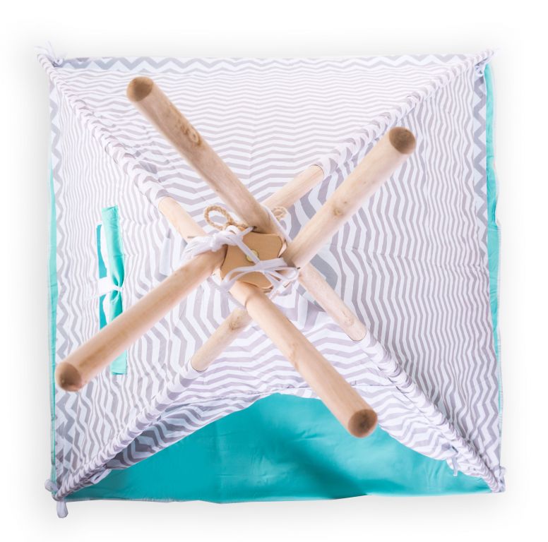 Luxusní stan pro děti G21 teepee je spolehlivým ochráncem dětských snů a tajemství. Zároveň ale vypadá skvěle, takže jej můžete umístit kdekoliv v interiéru, aniž by narušil krásu a harmonii vašeho domova. Právě proto se stany teepee staly hitem a nesmí chybět v žádné domácnosti s dětmi. Tyrkysové teepee je vyrobeno z látky ponžé. Extrémně pevná kvalitní látka je zároveň úžasně jemná na dotyk. Příjemný pocit umocňuje i její lesklý efekt. Teepee včetně všech polštářků i podlážky je hypoalergenní a dokonale prodyšné. Montážní tyče jsou vyrobeny z přírodního dřeva. Velice snadno. Jelikož je celý plášť stanu doručován v kuse a je dokonale připraven pro montáž, stačí jen provléknout 4 montážní tyče příslušnými tunýlky, nahoře tyče svázat a teepee je na světě! Podlážku položte na podlahu teepee. Vchod do stanu můžete buď zabezpečit pomocí připevněných provázků pro trvalé otevření, nebo jej spustit dolů a dopřát dětem soukromí. Ani na ten jsme samozřejmě nezapomněli! Nejen že je součástí teepee i podlážka, což není běžně zvykem, ale navíc dostanete k teepee i vybavení v podobě tří ozdobených a originálně tvarovaných polštářků. Na ty si mohou děti buď sednout, nebo na ně složit hlavu při odpoledním odpočinku. Na jedné stěně teepee je umístěno okénko. Součástí balení jsou také fixační kroužky pro spolehlivé spojení všech dílů.