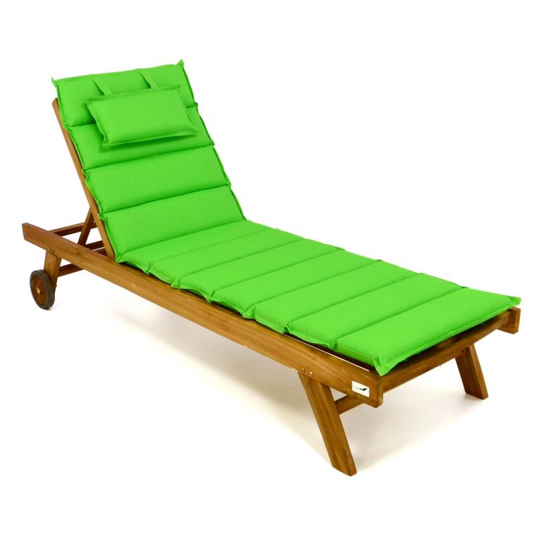 DIVERO lehátko z teaku, kola, světle zelená podložka