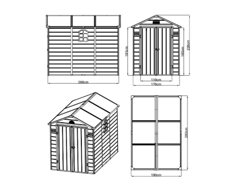 Zahradní domek AVE využijete pro uskladnění např. zahradního nářadí, jízdního kola, sekačky, příslušenství k bazénu, dřeva atd. Zahradní domek v moderním designu se hodí do každé zahrady. Zahradní domek je vyroben z kvalitního plastového materiálu - lehký a zároveň odolný. Plastové sloupky o síle materiálu 1,5 mm, vnější plastové panely o síle 12 mm a kovové výztuhy zaručují dostatečnou pevnost. Okno zajišťující dostatečný průchod světla do domku. Okno si jednodušeumístíte na pravou nebo levou stranu domku podle Vaší potřeby. Díky ventilační mřížce je zajištěno odvětrávání a cirkulace vzduchu uvnitř domku. Domek lze zajistit visacím zámkem. Součástí domku je konstrukční rám, který lze samozřejmě přikotvit k podkladu. Dále je možné dokoupit podlahovou konstrukci. Maximální zatížení střechy sněhem je 60 kg/m2. UV ochrana a odolnost nepříznivému počasí. Jednoduchá montáž.