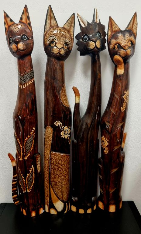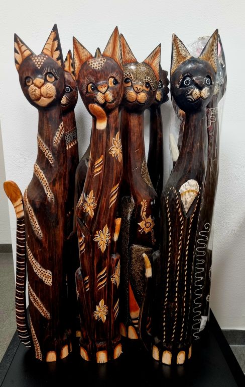Dřevěná socha kočka, 100 cm MIX dekorů