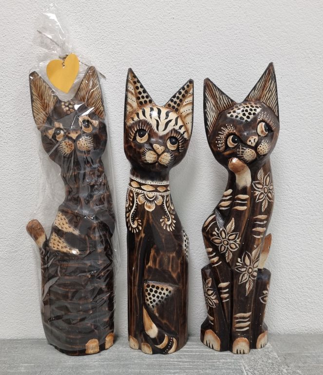 Dřevěná socha kočka, 40 cm, mix dekorů