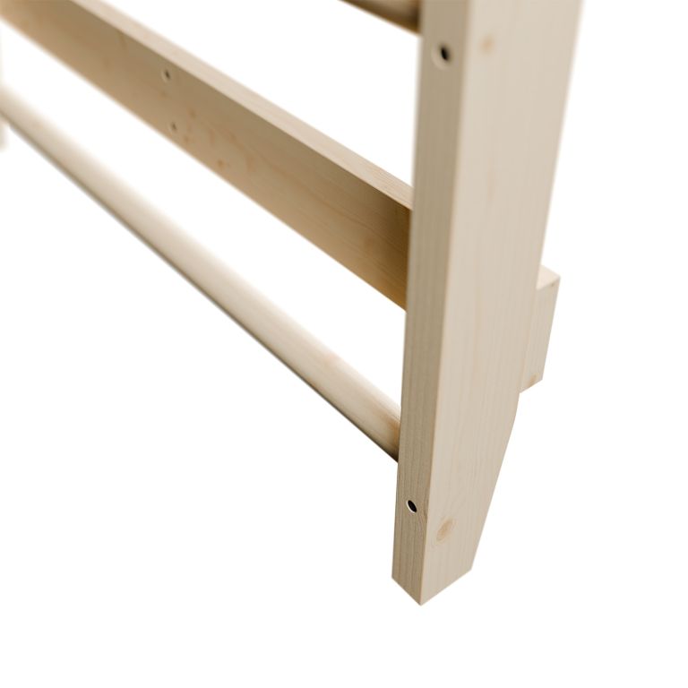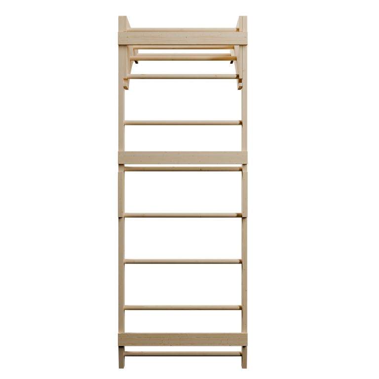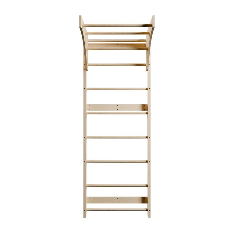 Ribstole jsou vyrobeny z odolného bukového dřeva a díky nosnosti 170 kg je mohou bezpečně používat i dospělí. Horní hrazda rozšiřuje možnosti tréninku o shyby či závěsné cviky, takže vybavíte domácí posilovnu jediným kompaktním prvkem. Žebřiny jednoduše připevníte ke zdi a získáte sportovní vybavení, které vám i dětem vydrží dlouhá léta.