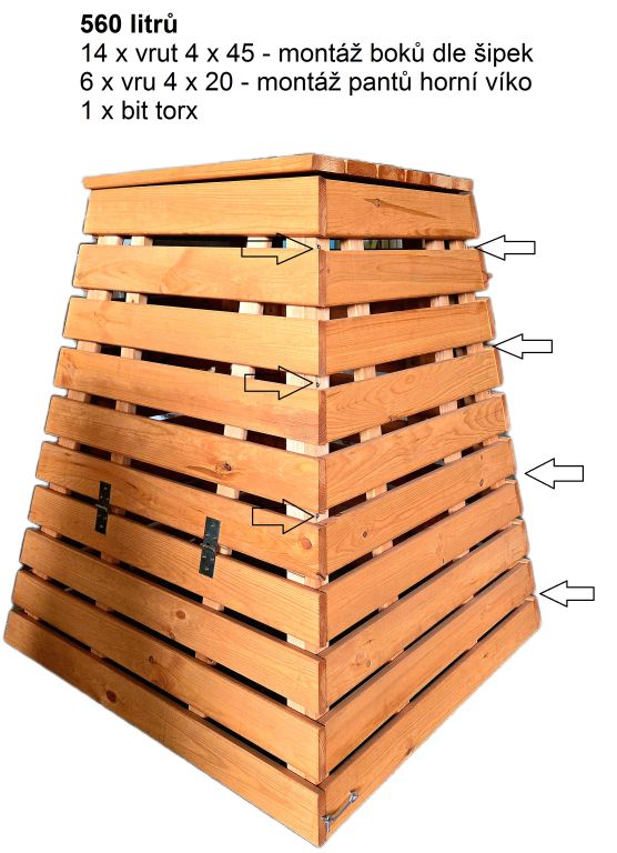 Kompostér je vyroben ze 20 mm silného dřeva s přírodní olejovou úpravou, která zajišťuje dlouhou životnost. Pyramidový tvar podporuje lepší proudění vzduchu, což urychluje proces kompostování. Dodává se rozložený (polosestavený) a váží 34 kg, ideální pro snadnou manipulaci a montáž.