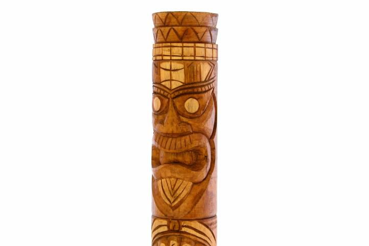 Ručně vyřezávaná socha ze dřeva s Tiki motivem.