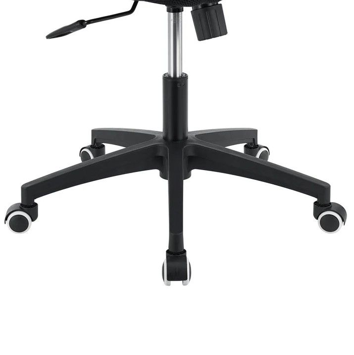 Robustní konstrukce s pětiramennou základnou a kvalitními kolečky zajišťuje stabilitu a snadný pohyb po jakémkoli povrchu. Výškově nastavitelný sedák a opěrka hlavy umožní přizpůsobení vašim potřebám. Prodyšná síťovina na opěradle zaručí pohodlí i při dlouhém sezení.