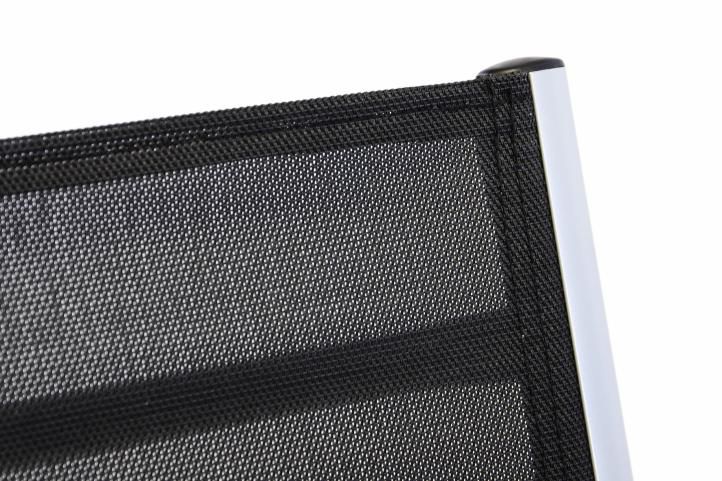 Židle jsou lehké, úsporné na místo a velmi pohodlné. Velmi kvalitní textilie (PVC potažený polyester) je počasí odolný a švy jsou svařeny. Židle zaručují optimální ventilaci na sedací a opěrné ploše. Polohovací systém je z robustního kovu, což zaručuje vysokou životnost kolejnic.