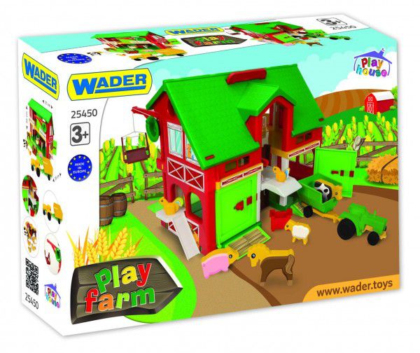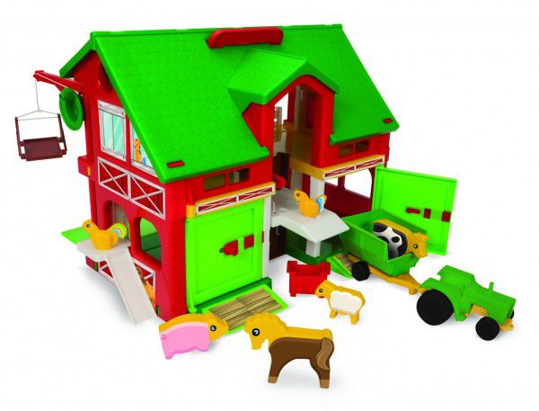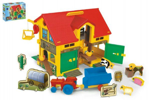 Malý farmář může chovat slepičky, koníka, ovečku, prasátko a kravičku. Pomocí výtahu dokáže uklízet i balíky sena. Na farmě nesmí chybět traktor s valníkem, který obstará polní práci.Velikost: 40 x 35 cm, v krabici 59 x 40 x 15 cm.Vhodná od 3 let.