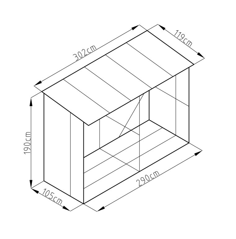 rozměry přístřešku se střechou: 302 x 190 x 119 cm (š x v x d)