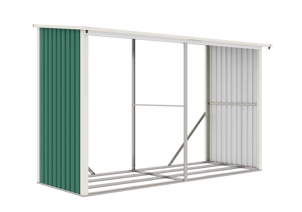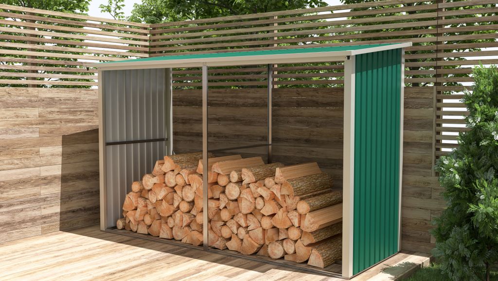Dřevník je vyroben z kvalitních plechů. Jednoduchá konstrukce přístřešku zaručí, že dřevo zůstane v suchu za každého počasí.